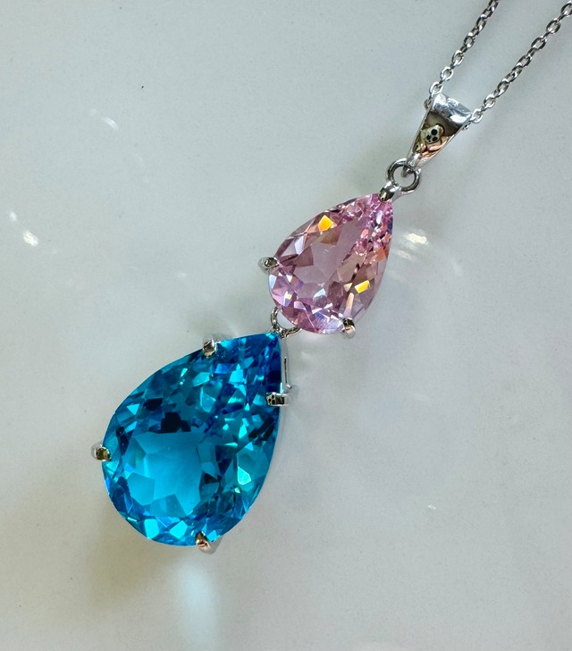 SV925ロジウムコーティングペンダントEBPK-svp1 美しいエレクトリックブルーとハートオブゴッドウィズインピンクの二連タイプのペンダント ◆アンダラ レムリアン クリスタル産地:シエラネバダ産 ◆シエラネバダ産の特徴:レムリアの地、シャスタの麓シエラネバダ山脈のネイティブアメリカンのチョクトー族、ネリーランドで採取されたアンダラクリスタルは、レムリアの優しくもパワフルなエナジーに溢れ、ネイティブアメリカンの聖地からの特別なパワーがチャージされています。 それは本来の魂の道への導きや変化の時のサポートとして、身に着ける方と共振しお互いの輝きを拡大して波動を上げて行きます。 中でも、当店のアンダラはハイシェラから産出されたエネルギーの高いアンダラクリスタルです。 ◆ペンダント地金:シルバー925ペンダント ロジウムコーティング:ペンダントトップ部分はロジウムコーティングを厚めにしているため、黒ずみにくく、お手入れが殆ど必要ございません。 ◆アンダラクリスタル大きさ 上:ハートオブゴッドウィズインピンク 大きさ最大値:縦11.5mm ×横8mm 下:エレクトリックブルー、 大きさ最大値: 17mm ×横11.5mm ◆カット:ペアシェイプ ◆バチカン含む全長: 38 mm ◆SV925 KGPチェーン付 ※プレゼントでお付けしているため、ネックレス無しでも同じ価格です。 ⭐︎ピンクとブルーのキラキラ輝くカットが美しいペンダント ⭐︎ 春から夏にかけてはもちろん、冬の白ニットなどに合わせても素敵です。 ☆上下揺れるタイプなので、キラキラと表情豊かに美しく輝きます。 ☆写真に写っているオラクルカードはこのジュエリーの為に引いたものです。ちょうど絵の色合いが合っていました。 意味:若返りや回復、調和、古代の女神たちからのサポート。 ⭐︎magical andara jewelry⭐︎ アンダラジュエリーとの共鳴で持ち主さまの波長、波動を上げてアンダラと共に美しく輝き、望む世界にパラレルシフトして行くサポートをします。 太陽と同じ構造を持つと言われているアンダラが、内側の輝きを表に放射し表現して行くことで、着けた瞬間から表情が輝き出します。 ◆上のピンクのアンダラ 名前:ハート オブ ゴッド ウイズイン ピンク 特性:ハイオクタブのハートの波動(ハイヤーハートの波動)、無我の目醒め、神聖なコスミックハート(大いなる宇宙のハート)のエネルギーを持ち、すべての批判/批難の解放の輝きです。 ◆下のブルーのアンダラ 特性:エレクトリックブルー特性: クールで活気に満ちたエネルギーと叡智をもたらします。あなたとの共振により活気に満ちたブルーのエネルギーが作動し、知識・情報がもたらされます。 ★カットも加工も熟練の職人さんによる手作り一点物のジュエリーとなります。 どのジュエリーもそうですが、天然のため色合いやサイズに幅がございます。入荷状況の関係で まったく同じジュエリーを作るのは難しい場合が多いため、気に入ったジュエリーを見つけられたら お早目のお迎えがお勧めです♡ ◆カット:通常ガラス質のカットは難しいのですが、ベテランの職人さんが手作業で非常に美しく仕上げてくださっています。 -------------------------------------------------------------- いつもアンダラクリスタルのお迎え頂きありがとうございます。 ティファレット・レイは、シエラネバダ産アンダラクリスタル正規代理店として、今年で13年目を迎えます。 今後もご縁のある皆さまへ、アンダラの輝きをお繋ぎさせて頂けたら幸いです。 アンダラたちの輝きがご縁のある方々へと届きますように ☆祝福がもたらされますように ♡ティファレット・レイ(アンダラクリスタル ミュゼ)展示会出展歴 IJT(国際宝飾展東京),ミネラルショー東京,ミネラルフェスタ,ミネラルザワールド ,石ふしぎ大発見展,癒しフェア, 横浜元町での定期的な販売会 その他ミネラルショーや癒し系イベント等に出展しております。詳細はWebショップブログ、insta等にてご案内中です。 皆さまとお会い出来る日を楽しみにしております。
