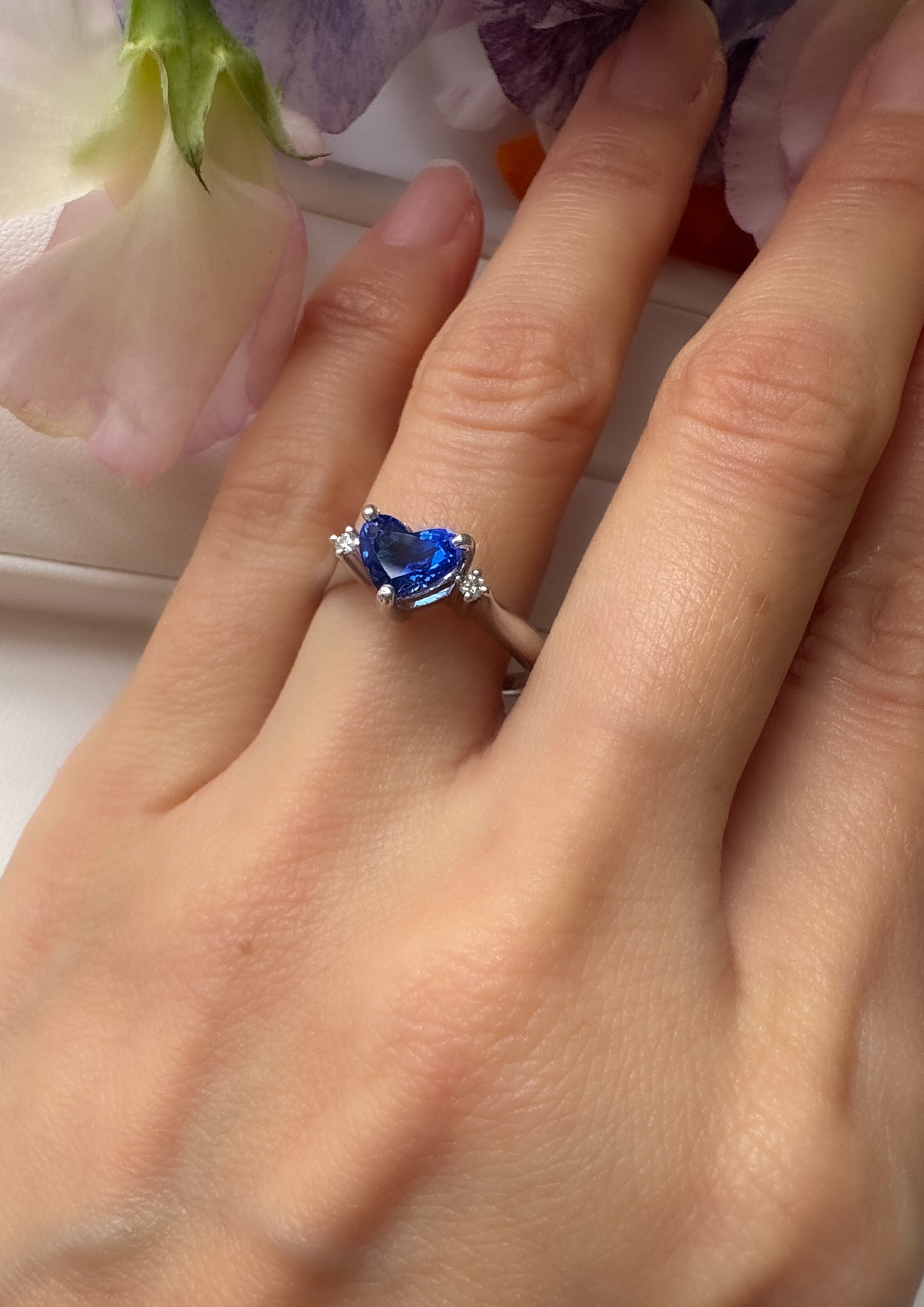 ♡こちらのエレスチャルサファイアは、ロイヤルブルーのタンザナイトファイヤー寄りのお色で、鮮やかなブルーがとても美しいです。