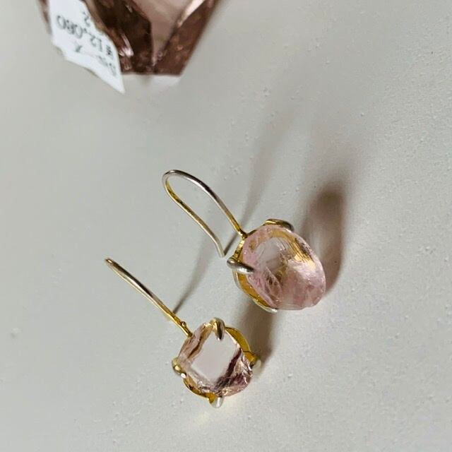 2つの異なるピンクのアンダラクリスタルのピアス