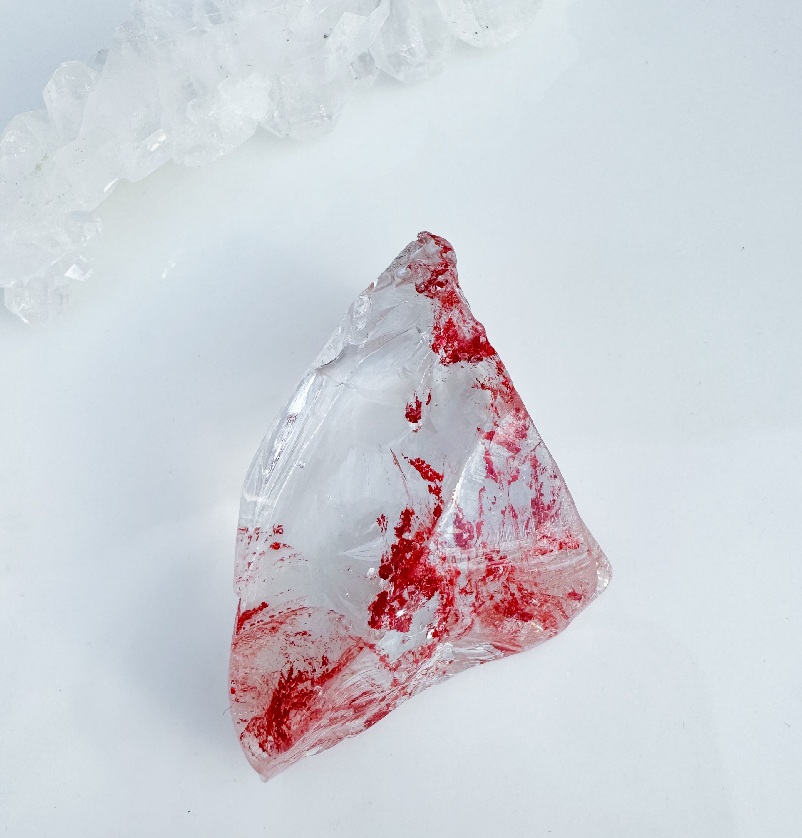 レッドのスカーレットシフトが美しい、希少なアンダラクリスタル。虹や気泡も入っています。