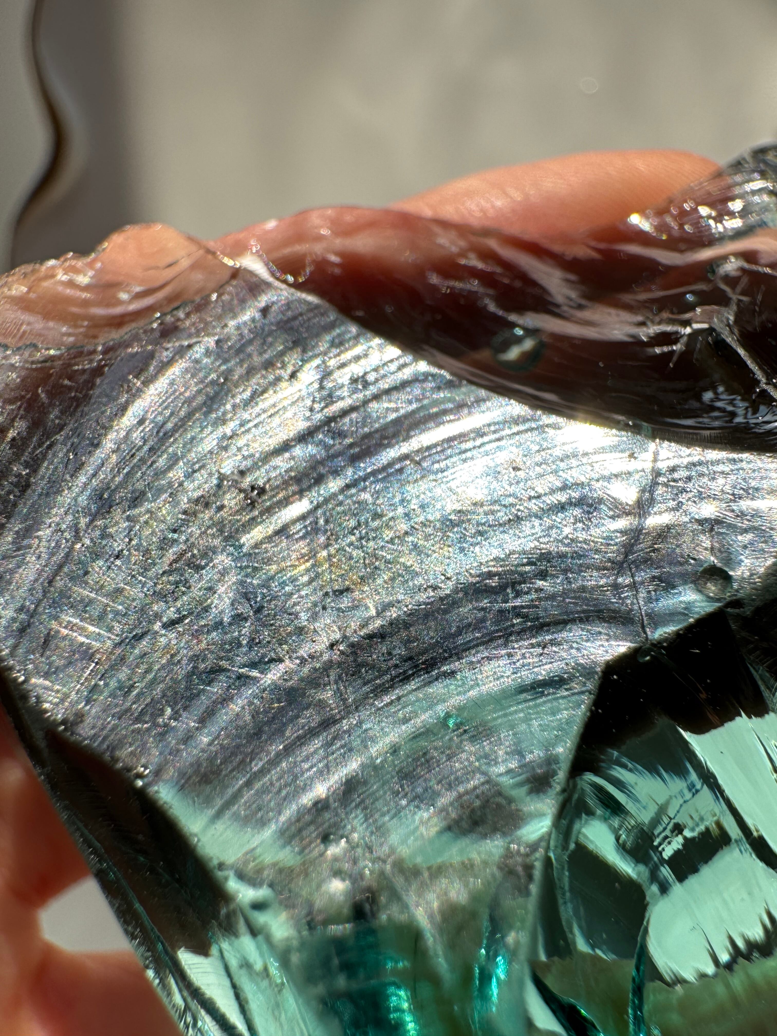 ◆透明感があり、アンダラ特有の波紋の様な模様や、気泡、一部銀化のような表面にうっすらと入った虹も美しいアンダラクリスタル。